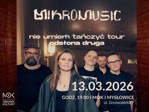 W piątek, 13 marca 2026 roku o godzinie 19:00, w Mysłowickim Ośrodku Kultury przy ul. Grunwaldzkiej 7 odbędzie się wyjątkowy koncert zespołu Mikromusic. Artyści wystąpią w ramach trasy promującej ich najnowszy album „Nie umiem tańczyć”, który zachwyca subtelnością, emocjonalną głębią