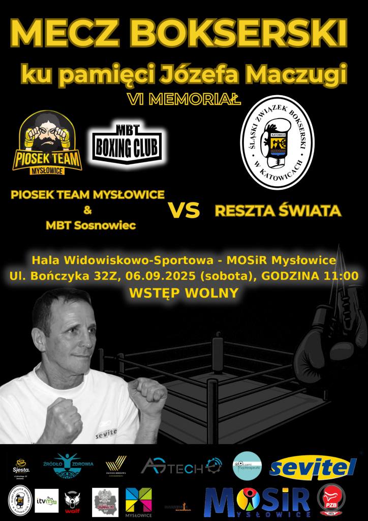 6 września na mysłowicki ring, w hali widowiskowo-sportowej przy ulicy Bończyka 32z, wskoczą bokserzy z całego Śląska. O godzinie 11:00 rozpocznie się tam szósta edycja Memoriału Józefa Maczugi, czyli widowisko pięściarskie z prawdziwego zdarzenia.