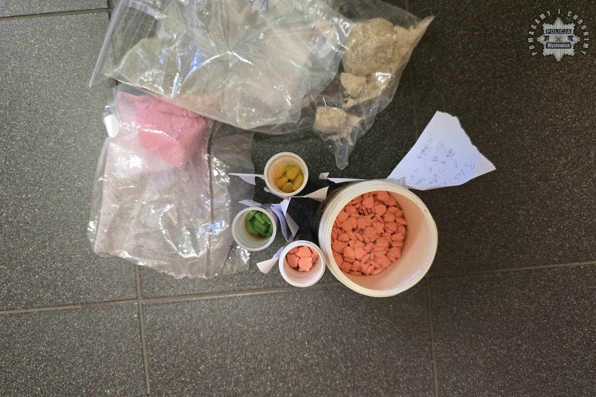 Wywiadowcy z Wydziału Prewencji mysłowickiej komendy zatrzymali 30 lipca mężczyznę, który w swoim garażu posiadał blisko 1,5 kilograma różnych narkotyków. W trakcie zatrzymania 50-latek posiadał 460 g efedryny, 350 g MDMA, 2800 działek dilerskich amfetaminy, 260 działek marihuany, 55 g haszyszu oraz kilkanaście tabletek z THC.