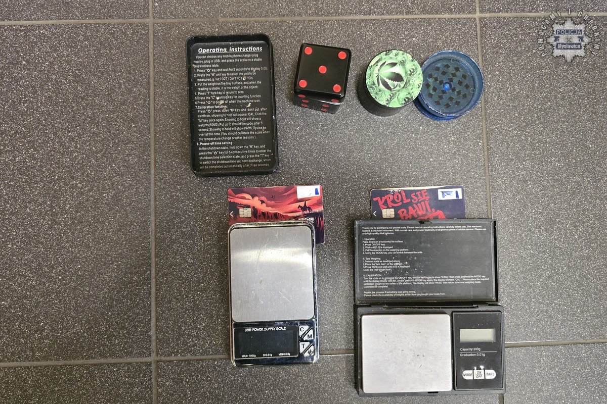 W garażu zatrzymanego policjanci znaleźli również młynki do mielenia marihuany oraz wagi i woreczki do porcjowania narkotyków.
