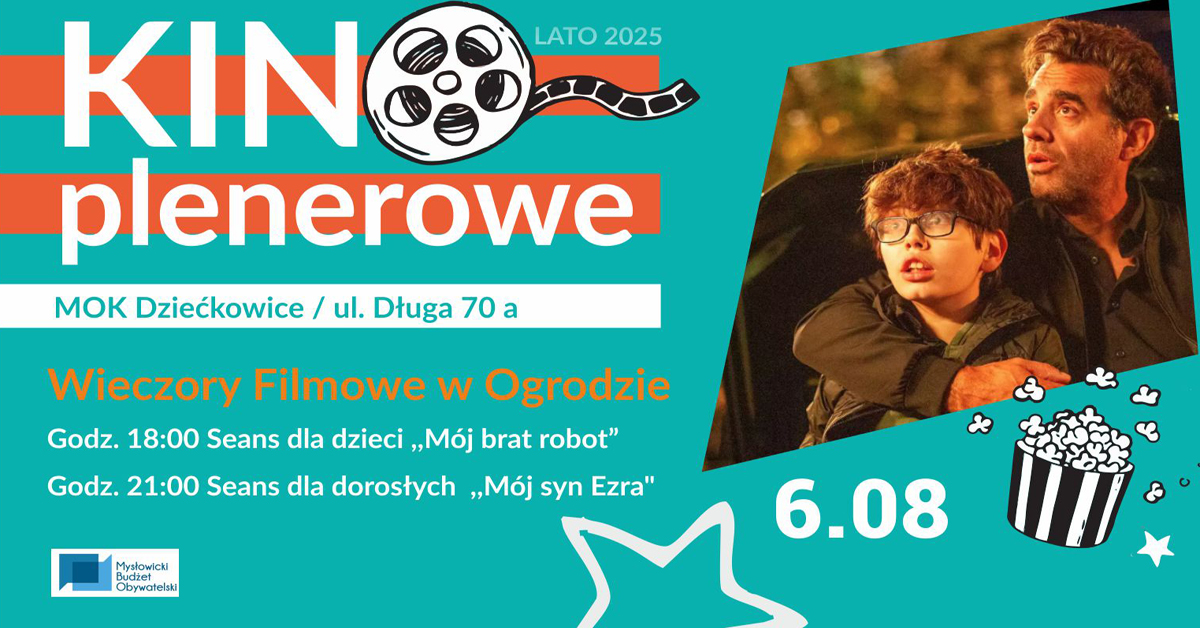 – Zapraszamy 6 sierpnia do Filii Dziećkowice na „Wieczory Filmowe w Ogrodzie” – startujemy już o 17:00 warsztatami dla dzieci! O 18:00 w sali filii pokażemy film „Mój brat robot”, a o 21:00 w ogrodzie – film „Mój syn Ezra”. Wstęp wolny – przyjdźcie z rodziną, weźcie koc i spędźcie z nami niezapomniany letni wieczór z filmem! – zachęcają organizatorzy.
