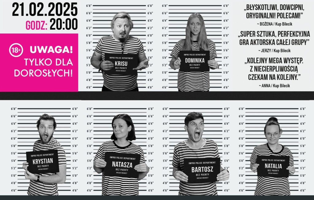 Przygotuj się na: historię miłosną, jakiej jeszcze nie widziałeś – Ty zdecydujesz, jakie przewinienia miłosne popełnili bohaterowie i jaka była ich romantyczna przeszłość. Komediowe momenty – humor, który rozbawi Cię do łez. Zaskakujące zwroty akcji – każda decyzja publiczności tworzy nowy, niepowtarzalny scenariusz. Wieczór pełen relaksu i dobrej zabawy – idealny, by zapomnieć o codziennych troskach.