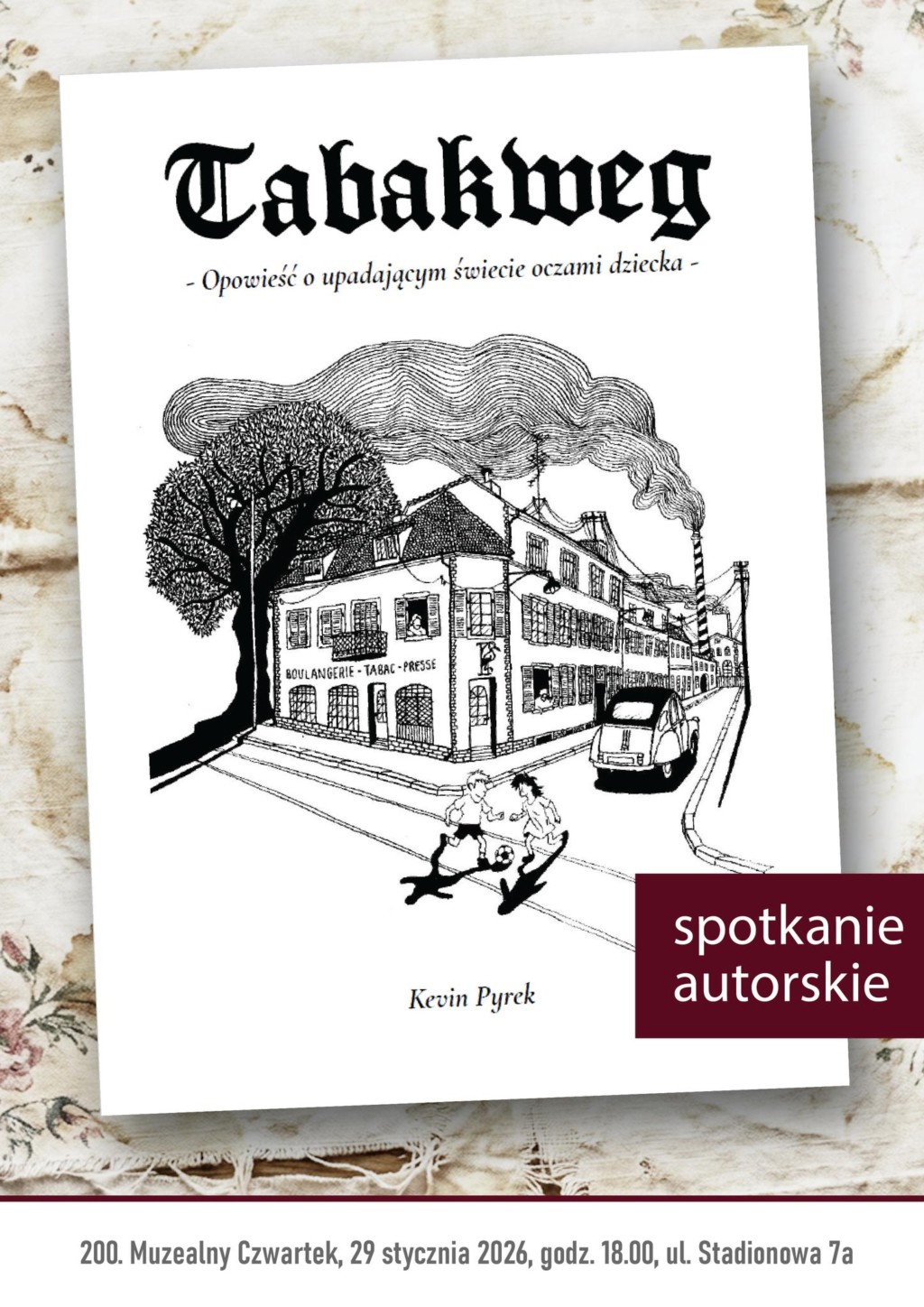29 stycznia odbędzie się wyjątkowy, bo jubileuszowy Muzealny Czwartek. Uczestnicy spotkają się już po raz 200! Gościem będzie Kevin Pyrek – autor książki „Tabakweg”, w której opisuje życie emigrantów we Francji, którzy przybyli tam w latach 80. XX wieku.