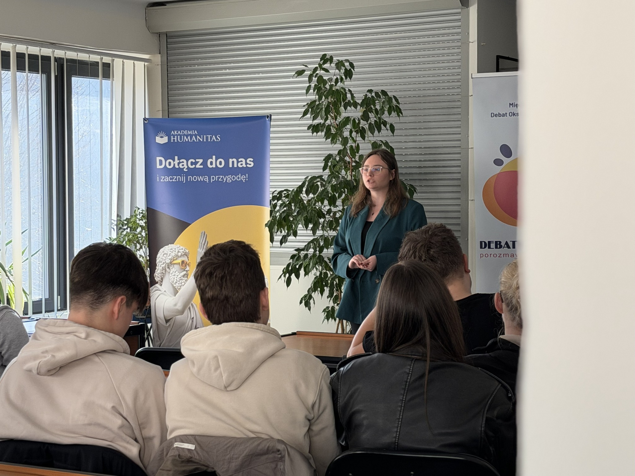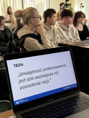 Jednym z punktów programu był warsztat „O sile argumentacji”, prowadzony przez ekspertów z Akademii Humanitas. Uczestnicy poznali zasady konstruowania przekonujących wypowiedzi, a także sposoby obrony własnego stanowiska w trakcie dyskusji. Zajęcia miały charakter praktyczny – młodzież analizowała przykładowe argumenty, uczyła się ich wzmacniania oraz rozpoznawania błędów logicznych, które często pojawiają się w debatach.