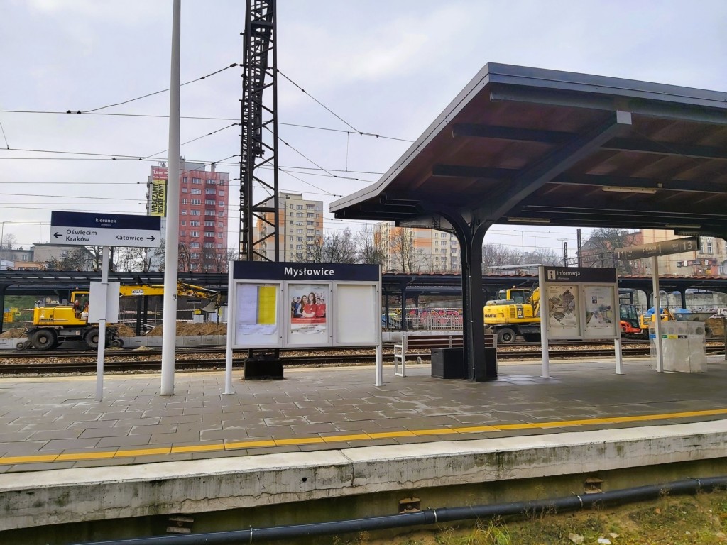 Prace w Mysłowicach rozszerzamy o roboty dodatkowe, których wartość to 9 mln zł. Rozbudujemy system dynamicznej informacji pasażerskiej. Elektroniczne wyświetlacze, dzięki którym podróżni zyskają więcej informacji o najbliższych pociągach, pojawią się na wszystkich peronach. Dodatkowym elementem będą osłony przez wiatrem i niekorzystnymi warunkami atmosferycznymi na peronach 2 i 3. Wybudujemy też dojście do peronu 1 od ul. Powstańców. Wymiana torów przy peronach usprawni przejazd pociągów przez stację. Wykonamy murale, czyli wielkoformatowe malowidła ścienne, które pokryją mur oporowy od ul. Oświęcimskiej i będą estetyczną „wypowiedzią” na temat historii kolei, miasta i regionu. Dodatkowy zakres prac spowoduje przesunięcie terminu zakończenia przebudowy stacji na czerwiec 2026 r.