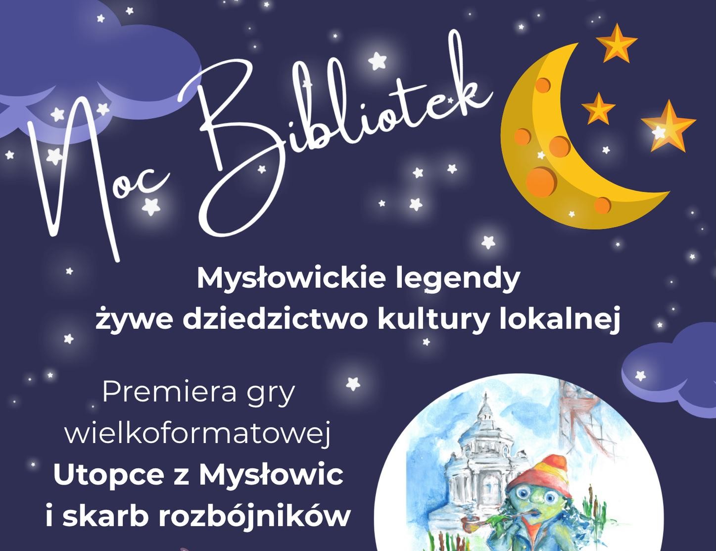 Wieczorami wszystko staje się bardziej tajemnicze i niezwykłe, biblioteki i książki również. Dlatego już 17 października Miejska Biblioteka Publiczna w Mysłowicach zaprasza w swoje progi, by wspólnie obchodzić Noc Bibliotek. Tego dnia swoją premierę będzie miała wielkoformatowa gra „Utopce z Mysłowic i skarb rozbójników”.