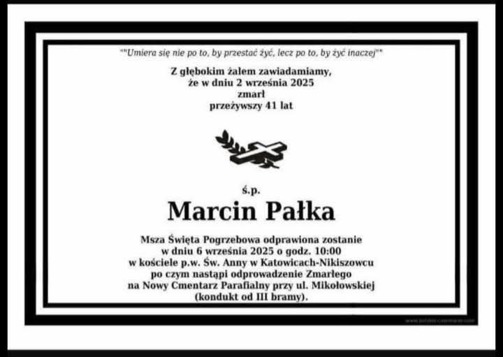 Z głębokim smutkiem żegnamy Marcina Pałkę, który odszedł w wieku 41 lat. Uroczystości pogrzebowe odbędą się 6 września.