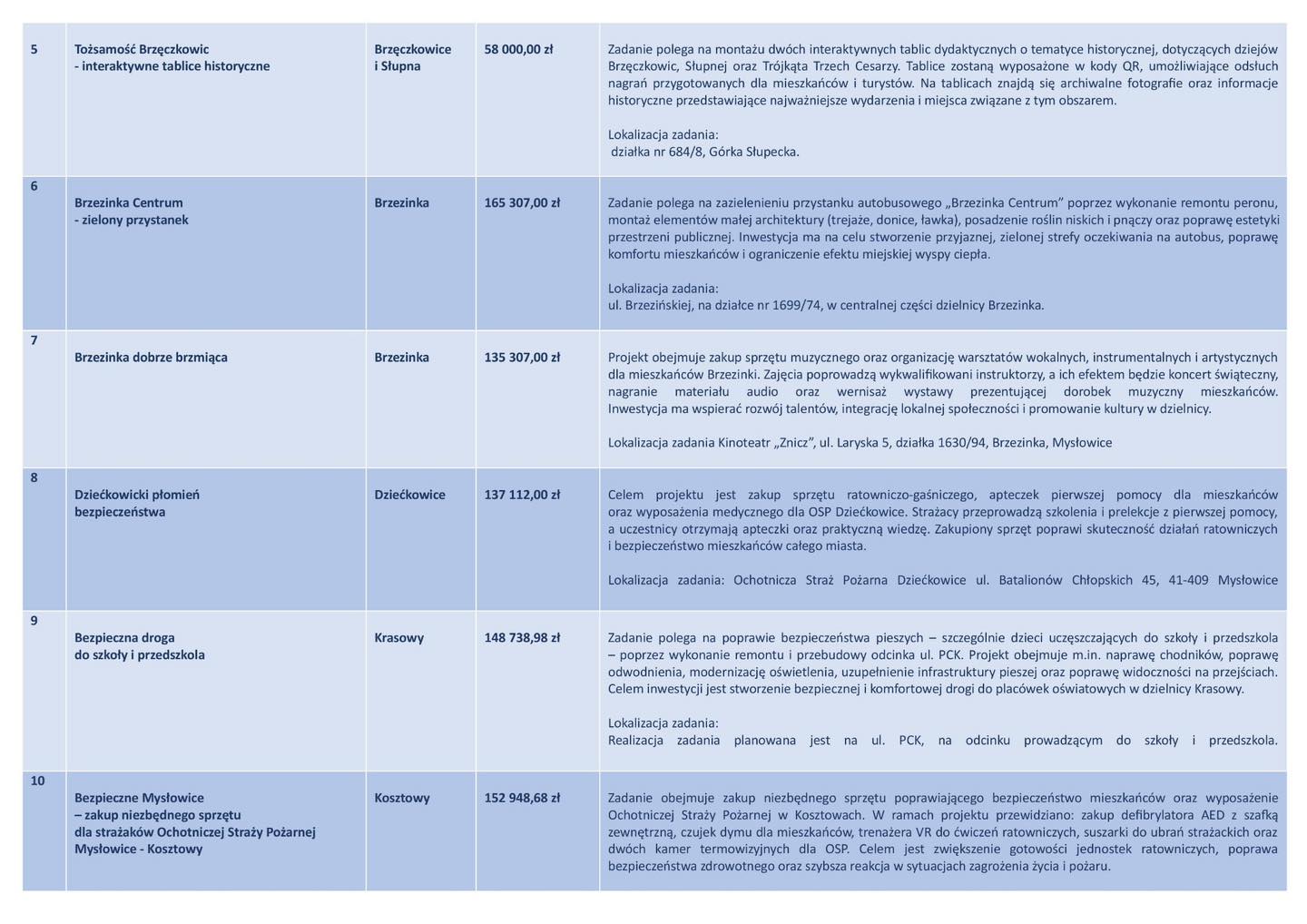 Poniżej lista zgłoszonych projektów, na które można oddać głos: