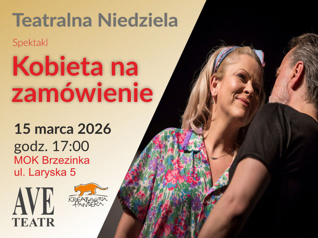 Już w tę niedzielę, 15 marca o godz. 17:00, w MOK Brzezinka odbędzie się kolejna odsłona uwielbianego cyklu Teatralna Niedziela. Tym razem na scenie pojawi się pełna humoru komedia „Kobieta na zamówienie”.