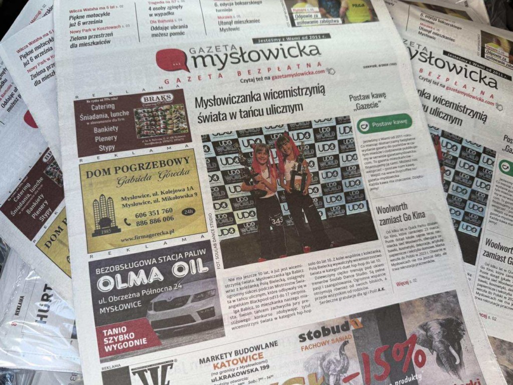 W najnowszym numerze przeczytacie m.in. o mysłowickiej wicemistrzyni świata w tańcu ulicznym, dowiecie się jaki sklep powstanie w miejscu byłego kina i jaki park w Kosztowach, a także co planuje Polska Grupa Górnicza w kopalni Mysłowice-Wesoła. Przeczytacie wiele aktualnych informacji z życia miasta i nie tylko. Znajdziecie też zapowiedzi kulturalnych wydarzeń, kronikę policyjną, nasz autorski komiks „Szemrany” i wiele więcej. Zapraszamy do czytania!
