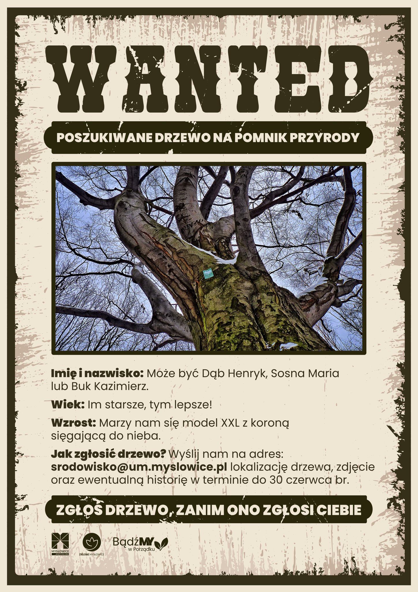 Urząd Miasta Mysłowice ogłasza nietypowe, ale niezwykle ważne poszukiwania. Szukamy wyjątkowego drzewa, które zasłuży na tytuł pomnika przyrody. Może to być dąb Henryk, sosna Maria, buk Kazimierz – imię nie ma znaczenia, liczy się charakter!