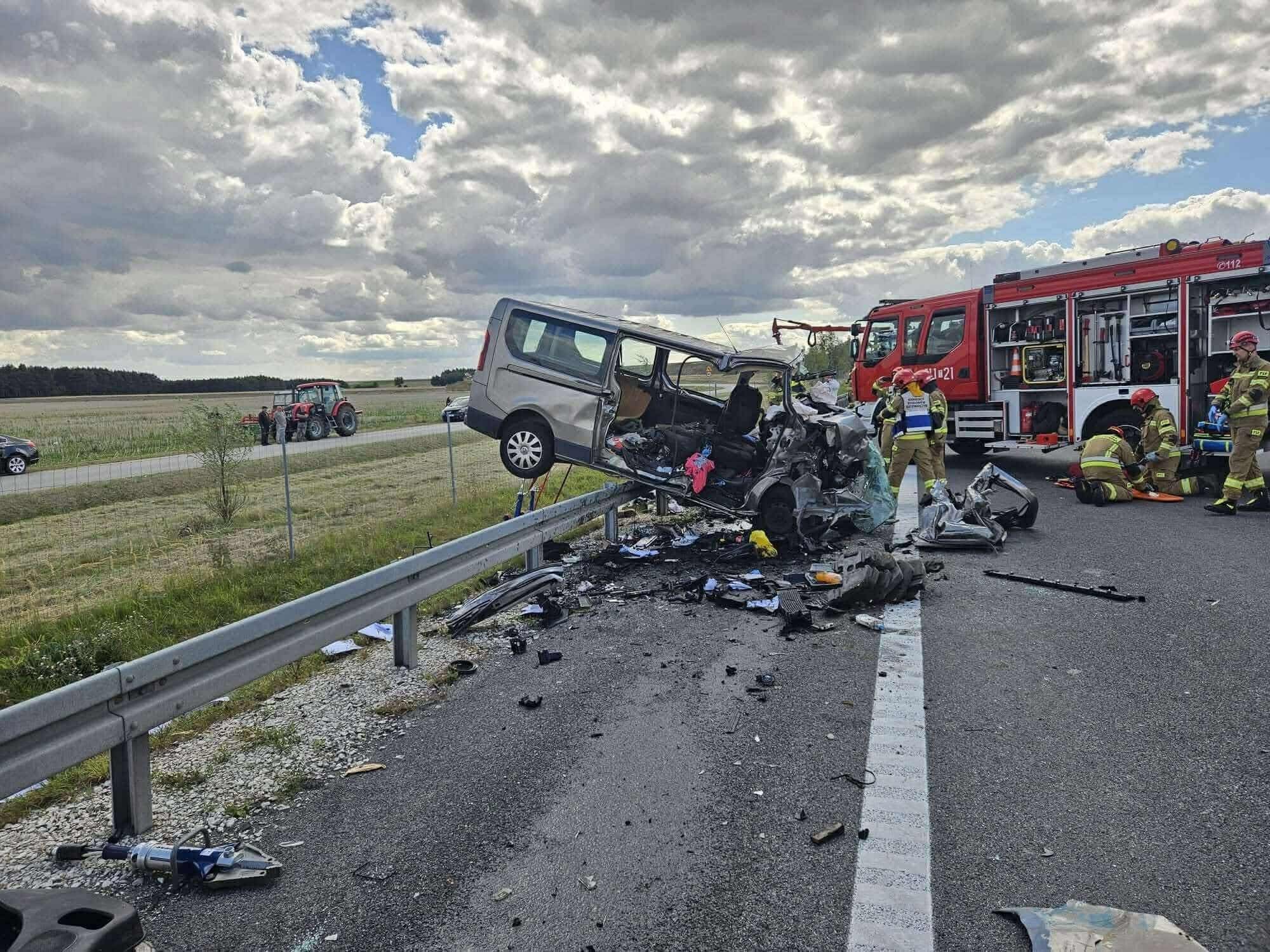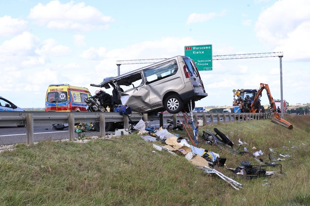 Do zdarzenia doszło w poniedziałek w miejscowości Mierzawa w powiecie jędrzejowskim na drodze ekspresowej S7. Ze wstępnych ustaleń policji wynika, że bus marki Renault podczas wyprzedzania najechał na ciągnik rolniczy, który kosił trawę na poboczu. Następnie pojazd uderzył w bariery drogowe i częściowo zawisł tylnymi kołami na metalowych przęsłach.. W wyniku tego zdarzenia na miejscu zginęli czterej pasażerowie busa: dwóch mysłowiczan w wieku 49 i 51 lat oraz dwóch mieszkańców Jaworzna.
