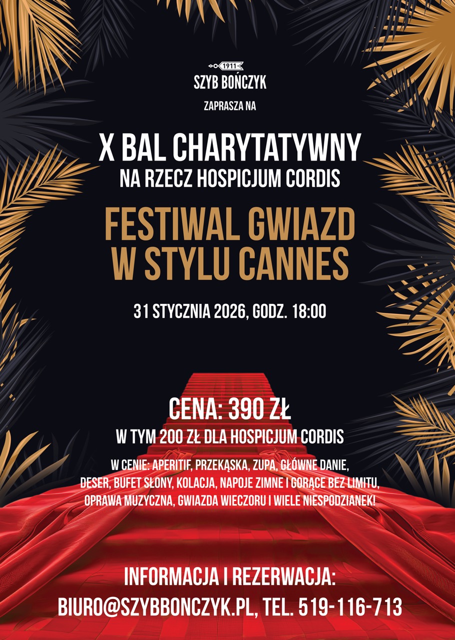 – Nie idziesz na sylwestra? Chcesz świetnie się bawić i jednocześnie zrobić coś dobrego? To idealny moment, by podarować sobie (lub komuś wyjątkowemu) udział w X Jubileuszowym Balu Charytatywnym dla Hospicjum Cordis w Szybie Bończyk. Jedyny taki bal w regionie. Wykwintne menu. Wiele atrakcji i doskonała zabawa. A przede wszystkim – realna pomoc dla Hospicjum Cordis – zachęcają organizatorzy.