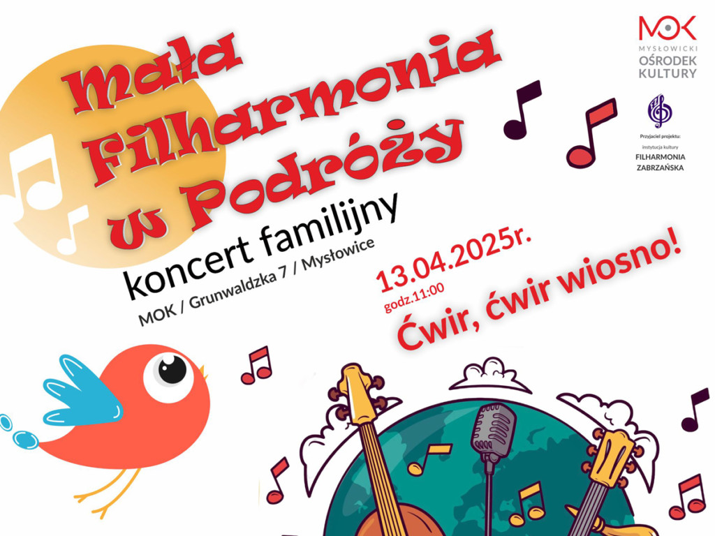 Po ogromnym sukcesie ostatniego koncertu z cyklu „Mała Filharmonia w podróży”, Mysłowicki Ośrodek Kultury zaprasza na kolejne muzyczne spotkanie, które dostarczy jeszcze więcej radości i wzruszeń najmłodszym i ich rodzinom!